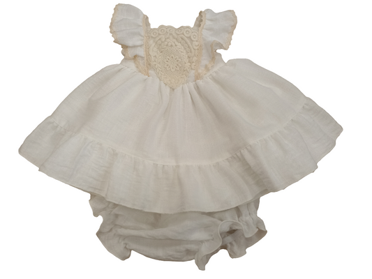 Vestido con braguita en tejido bambula color blanco roto 37101