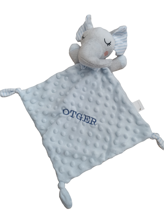 Toalla y dou dou personalizados azul elefante.