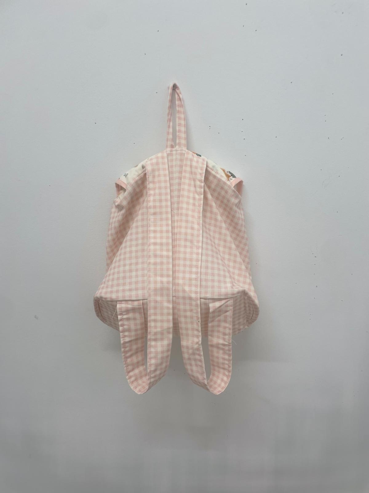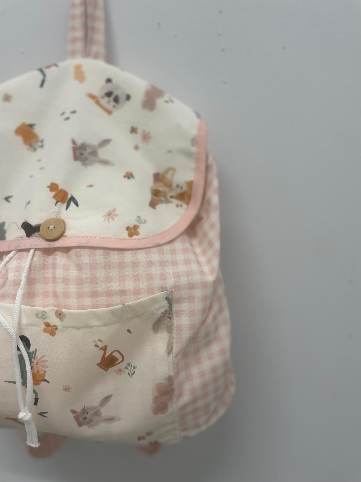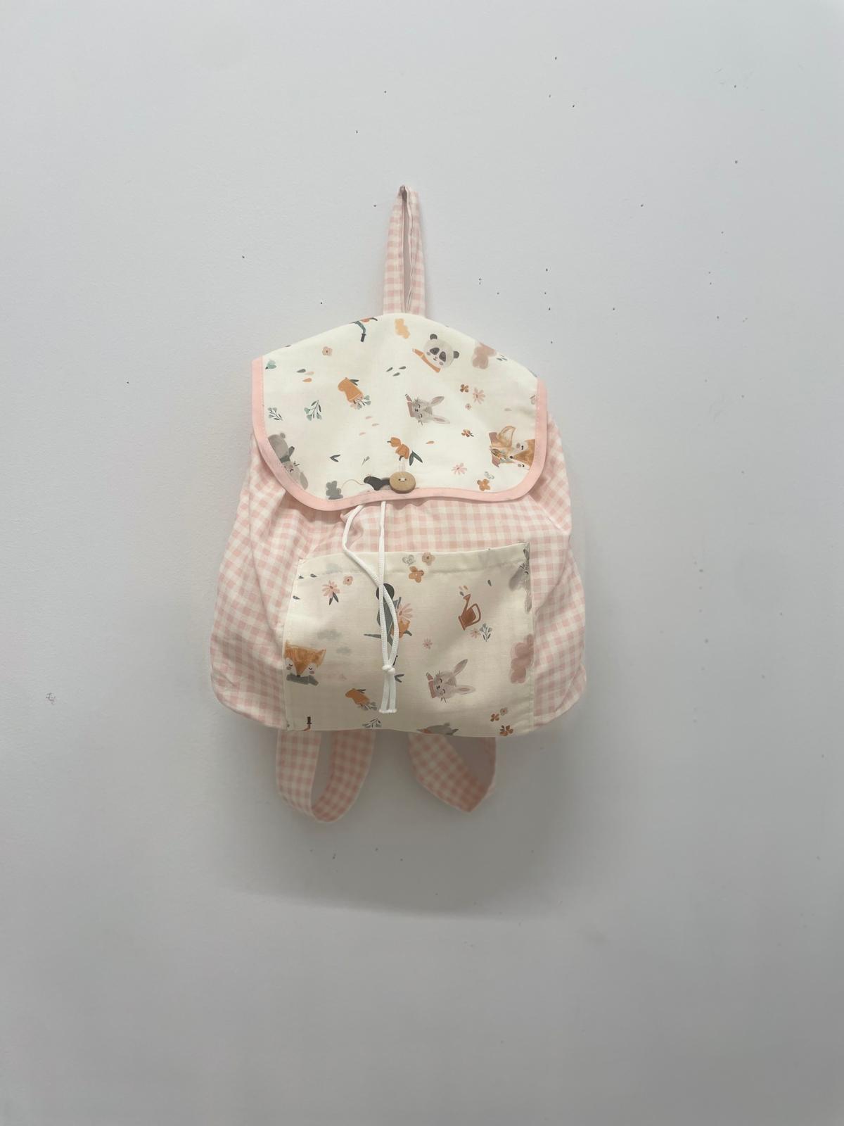 Mochila tela cuadro Vichy rosa animalitos