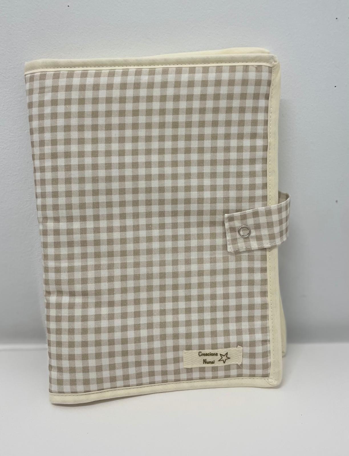 Con dos compartimentos uno con un agujero para dejar el paquete de toallitas dentro y poder cogerlas con facilidad y el otro para meter los pañales del bebé.