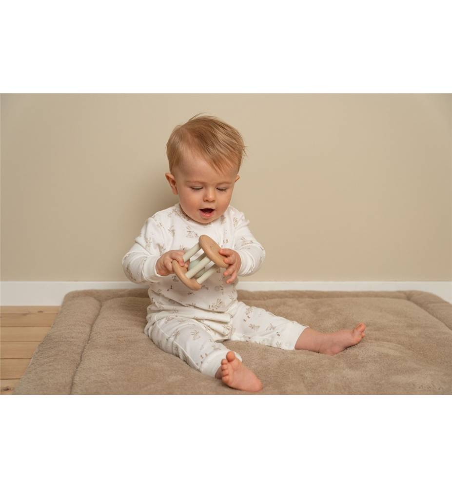 Este lindo sonajero de madera rueda y rueda, haciendo un sonido de timbre a medida que avanza. A los niños les encanta perseguirlo, agarrarlo y sacudirlo. El juguete promueve la coordinación mano-ojo y está especialmente diseñado para ser agarrado por las manos de los niños pequeños.